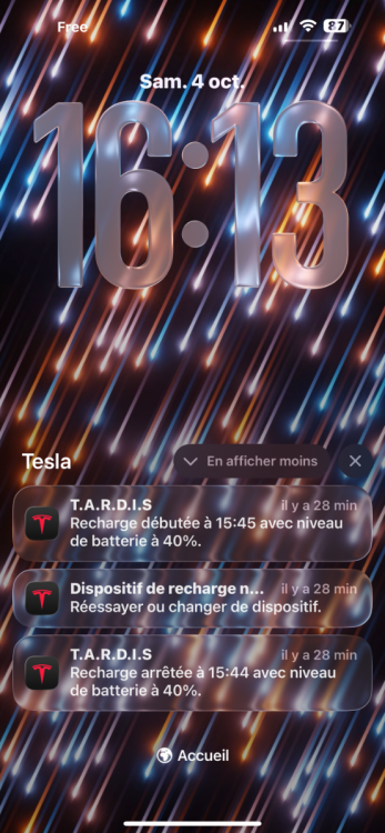 De mon coté, j'ai régulièrement un message d'erreur, parfois je dois cliquer sur "réessayer" de 1 à 6 fois pour ouvrir l'application, si c'est plus, je dois la fermer pour la rouvrir. J'ai aussi un "gel" de l'affichage, pour être plus précis, je peut lancer une charge à domicile qui m'annonce "63% temps restant 3h45" et avoir toujours la même infos une heure plus tard. Souvent les infos se remettent à jour en passant les dizaines de % mais il me semble que ce n'est pas systématique. Elle se remettent parfois aussi à jour lorsque de déverrouille / verrouille l'auto à distance. Difficile de dire si c'est un problème de l'application ou de la voiture, mais ça ne me tracasse pas vraiment puisque je charge la nuit; Ce serait plus gênant si je chargeait en chemin et que je dépendais de l'info pour libérer la borne sans faire attendre quelqu'un.