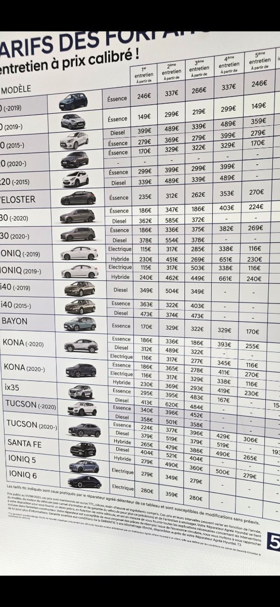 Dans ma concession enfin ex concession les prix changent tous les ans pour une augmentation (entre 2 a 4 fois plus cher en 2ans) 1er entretien 115€ 2eme entretien 317€ 3eme entretien 503€ 4eme entretien 338€ 5eme entretien 116€ Dire qu'avant c'était entre 69 a 119€