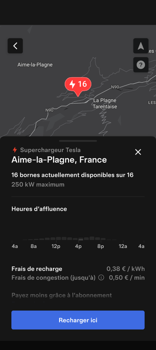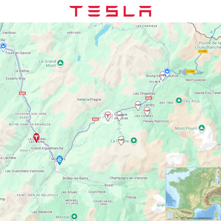 Agrandissement terminé d'une station Tesla à Aime-la-Plagne (E. Leclerc). Ajout de 8x 250kW CCS Soit 16x 250kw CCS Prix sans abonnement/non Tesla sur la capture Comme d'habitude, retrouvez le lien vers ma carte : https://tinyurl.com/StationsVE Toute l'actu des stations de recharge sur le groupe FB : https://tinyurl.com/GroupeFacebookVE