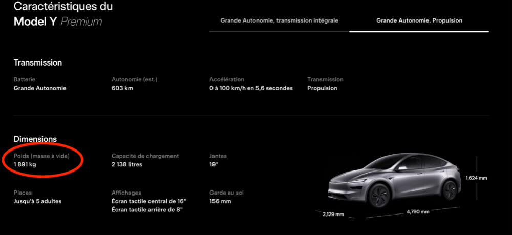 @Voltor c'est certainement par ce que tu es sur l'onglet AWD du site, pas celui de la RDW (en haut à droite), masse à vide : 1891 kg à ce jour. -