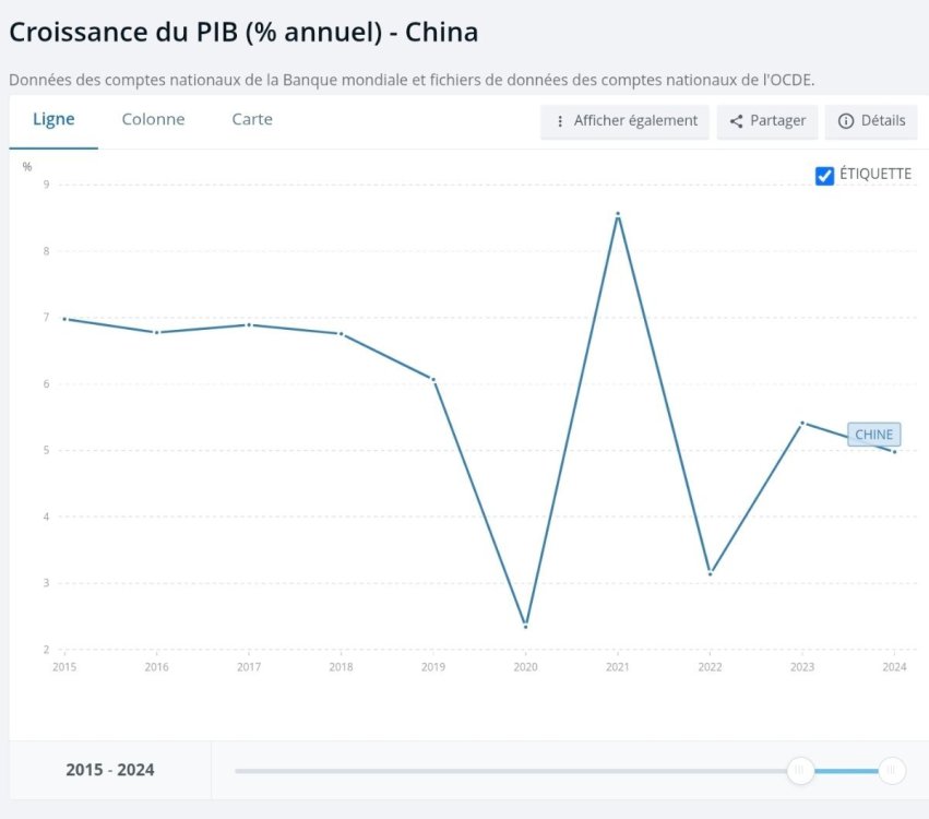 La quasi-stagnation des émissions chinoises est corrélée au ralentissement de la croissance économique sur la période : Source : Banque Mondiale. Et cela ne va pas s'améliorer avec la guerre en Iran : "L'Asie se reporte sur le charbon face au choc pétrolier" https://www.connaissancedesenergies.org/afp/lasie-se-reporte-sur-le-charbon-face-au-choc-petrolier-260324 Les perspectives de ventes de VE n'impactent pas que GM, Ford et Stellantis. Honda s'y met aussi : "Honda et Sony ont annoncé mercredi la suspension des activités de leur coentreprise spécialisée dans les véhicules électriques afin d'évaluer son avenir sur un marché mondial en pleine mutation. [...] Le communiqué fait état d'une "réévaluation par Honda de sa stratégie d'électrification automobile" et indique que les hypothèses sur lesquelles reposait la coentreprise ont "fondamentalement changé". https://www.boursorama.com/bourse/actualites/honda-et-sony-suspendent-leur-coentreprise-dans-les-vehicules-electriques-4e7b16ce80a1a85e36de6c0d653ff6ab
