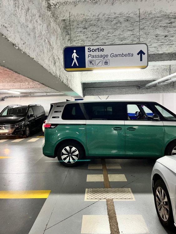 Pour ceux qui se pose la question, photo prise dans un parking donné pour 1.95m, sachant que le Buzz fait 1.93 à l'antenne. Ça fait peur, mais ça passe.