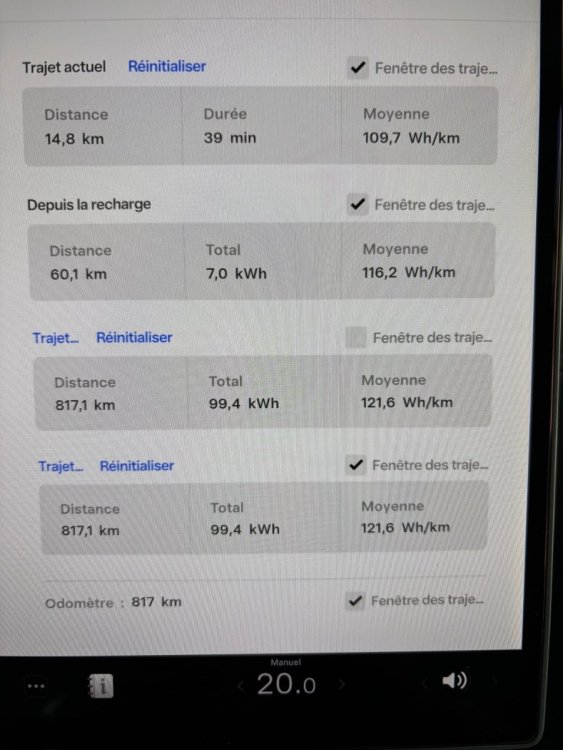 Hello, Désolé, je n'ai pas eu le temps de faire un retour sur ma livraison d'hier. Globalement, tout s'est bien passé. J'ai pris une heure pour appliquer la checklist indiquée en haut du post, et je n'ai eu que 2 points à remonter: - les 2 portes côté conducteur ne ferment pas très bien, mais on a vite constaté qu'avec les vitres ouvertes, aucun problème. On en a déduit que ça devait venir des joints neufs qui étaient encore un peu raides et ça a été confirmé par le technicien sur place qui nous a expliqué que c'était quasi systématique et qu'il fallait attendre un peu pour que ça ferme mieux. Il nous a fait la démonstration aussi que si l'une des 2 portes était ouverte, l'autre se refermait sans problème. - mes plaques étaient en 78 (je suis dans le 95). Il y a 2 ans, j'avais demandé à être immatriculé en 974, ça avait été accepté mais non fait: j'avais été immatriculé en 95 sous prétexte qu'il fallait mettre le département du domicile (ce qui est faux). Là, quand j'ai vu que j'étais en 78 alors que les voitures autour de moi étaient en 91, 92, 75, etc. je leur ai demandé s'il était possible de changer les plaques. Aucun souci, ça a été fait en 5-10 minutes en 974 du coup. J'ai demandé à tout hasard si je pouvais quand-même récupérer les autres plaques pour ma remorque et mon porte vélo mais ils ont refusé... je vais donc devoir en acheter, c'est un peu ridicule mais tant pis... Ah, sinon, un tout petit souci résolu sur place rapidement: la vitre conducteur n'était pas calibrée: il restait 3-4 cm quand je l'ouvrais. Sur le coup, j'ai cru que c'était lié au modèle Juniper mais quand j'ai vu que la vitre côté passager s'ouvrait complètement, j'ai compris que c'était un problème de calibrage. Je l'ai fait aussitôt et c'est bon. Sinon, pour la première fois, je n'ai pas constaté de micro-rayures sur la carrosserie. J'espère avoir bien regardé car c'était en extérieur avec des averses de temps en temps, donc pas une carrosserie nickel... Les techniciens sur place m'ont dit que j'avais de la chance car ils avaient hier toute une série de voitures rayées et ils devaient toutes les reprendre pour arranger ça. Au niveau chiffres, elle avait 54% de batterie et 4km au compteur. J'ai aussitôt eu les 1000km de supercharge pour la fidélité + 150km car je n'étais pas à 100% de batterie (confirmé ce matin par mail). J'ai oublié de regarder à combien j'étais en conso, j'ai regardé sur le chemin du retour après avoir fait environ 20km, et j'étais à 15kW/100. Je pense donc qu'il n'y avait pas de mauvaise surprise à ce niveau. Bon, pour l'instant, j'ai 2 belles Tesla rouges dans mon garage -