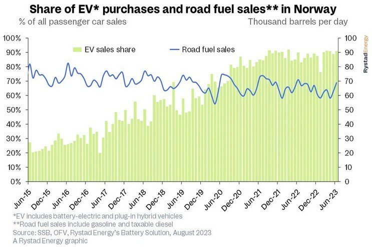 Je suis d'accord avec toi, mais je ne parlais pas de ça. Si la consommation de carburant ne diminue pas autant qu'on l'attendait, il faut analyser par qui et pourquoi ce carburant est consommé. Mais ce n'est pas à cause des VE. Vous noterez au passage qu'en Norvège, il y a toujours des pics de conso de carburant en juin (début des transhumances estivales), on voit très bien le creux du 1er confinement début 2020, puis 2 étés où la conso est au même niveau que 2019, et une décroissance qui ne commence vraiment qu'à l'été 2022. Il faudrait avoir les 3 années suivantes pour se faire une opinion fiable...