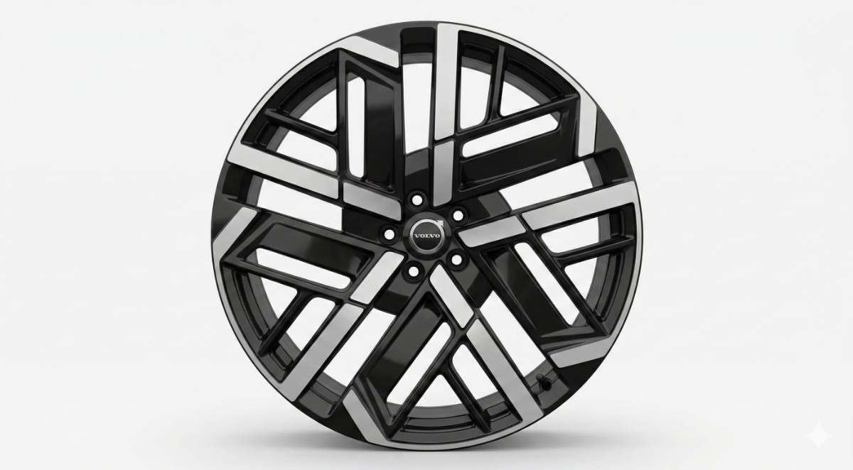 Si quelqu'un se demande a quoi ressemble les jantes 21" à 5 branches glossy black/matt graphite diamond cut de série de la motorisation P12, j'ai fait une petite simulation IA en lui demandant de retirer les aerocaps (qu'on peut retrouver en pièce détachée OEM ici https://www.swedendrive.com/wheel-inserts-volvo-ex60 photo2). Ca donne ca, si c'est avéré c'est plutôt sympa