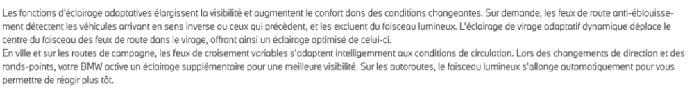Alors le mot "matriciel" n'est effectivement pas mentionné mais ce qui est décrit c'est bien leur fonctionnement, à savoir que les feux excluent les autres véhicules du faisceau. Disons que c'est pas juste un on/off complet des feux de route quand quelqu'un arrive en face mais une exclusion ciblée des autres véhicules.
