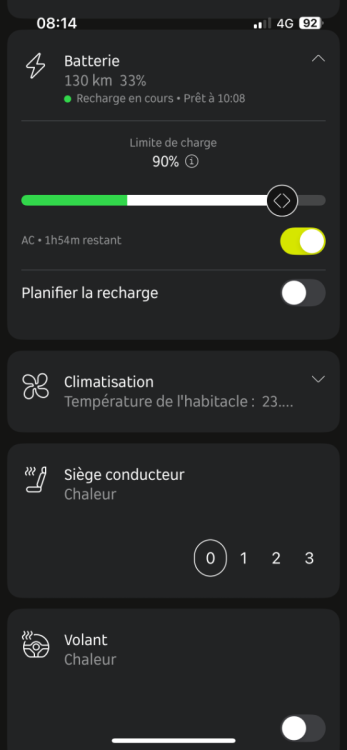 Je l’ai installé ce matin avant de revenir d’un mariage à 330km de chez moi dont 287km d’autoroute en centre France donc ça monte et ça descend bien😅. petit soucis à mon goût car il prend en compte: soit la consommation général de la voiture / soit les derniers km effectué et vu que je suis à 17,6 /7400 km et j’étais 18,2 sur les 100 derniers km effectué il m’estimait une arrivée à la borne à 19% et je suis arrivé à 9% en roulant à 113km/h de moyenne. (Que sur autoroute régulateur à 122km/h) j’avais demandé d’être au borne de recharge au minimum à 15% pour garder de la marge au cas où ….(on est le 15 août y a du monde sur les autoroutes) et quand je suis arrivé trop bas dans le gps il ne m’a jamais proposé de changer l’arrêt alors que je suis passé 2 fois sur des aires avec bornes de recharge juste avant… donc faire attention. Après un manque de choix (on ne peut lui mettre qu’une option pour le trajet… plus rapide/ sans péage/ sans autoroute… ) bref faudrait plus de choix là dessus pour faire correspondre nos envies à nos besoins à mon goût. Par contre très cool de lui dire qu’on désire arriver au borne de recharge avec en général 10/15/20% de batterie et de régler de la même façon combien on souhaite de % batterie à notre arrivée final. pour les temps de recharge c’est limité aussi il donne un temps de recharge mais si la station ne délivre pas la puissance estimé (c’est forcément ce qui m’est arrivé sur une borne atlante….120kw/h max et à 50% je suis tombé à 48kw/h quand un gugus c’est branché sur la même borne alors qu’il y avait 2 bornes totalement vide à côté 😓 mais je n’ai pas vu d’info sur quand arrêter la charge ou à combien… et vu que je m’agacait jsuis allé mangé dans une zone où il y avait des bornes 22kw/h gratuite 1h 😁 merci à notre chargeur AC d’être aussi appréciable dans ces moments là 😎