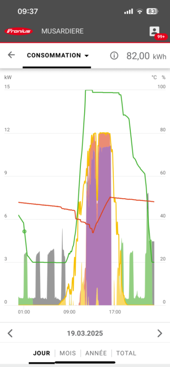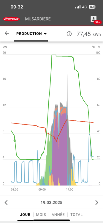 La France est en excédent de production . Ce n’est pas un scoup nous l’avons été très souvent ses dernières années et nous allons probablement en 2025 un record d’exportations pour environ 5 millards d’€ . On va pas s’en plaindre. Alors pour la modulation on peut bien sûr le demander au nucléaire, mais on peut aussi essayer de mieux produire pour éviter les prix négatifs et le solaire photovoltaïques en est souvent une de ses causes mais il a aussi pleins de moyens pour l’éviter de très mauvaise où des moins bonnes mais aussi de très bonnes. https://www.linkedin.com/posts/arnaud-zufferey_solairepv-transitionaeznergaeztique-activity-7405131811531448320-NUNu?utm_source=share&utm_medium=member_ios&rcm=ACoAABPob0YBtorDRELEOuHGbxqFzjbn5Je6fYI la moins bonne c’est sans doute celle qui va être demandée au 1 er janvier 2026 en Suisse. Brider les installations photovoltaïque à 70 % de leur puissance DC. Ok c’est efficace et pas dramatique. Mais il y a mieux à faire. bon ok favoriser le smart charging de nos voitures😉 Mais les installations peuvent être mieux orientées par exemple, en Est Ouest par exemple où encore avec une inclinaison plus forte pour favoriser la production hivernale et mi saison colle on le fait pour le solaire thermique. On peut aussi surcharger les onduleurs en puissance module pour qu’il favorise la puissance à faible ensoleillement. Enfin plein de solutions que l’on peut réaliser sur les installations domestiques celles justement sur l’on ne met pas en avant aujourd’hui en France. voir ci dessous deux exemples d’installations. la premier est plein sud optimum pour la production annuelle. Mais la production est moins bonne le matin et en fin AP. La puissance de l’onduleur est pratiquement atteinte. 3 kW dans cette installation. Dans le deuxième cas Expo Est Ouest. La production démarre plutôt et fini plus tard meilleur pour l’autoconsommation de plus la puissance de l’onduleur ici de 6kW n’est pas atteinte. Les deux derniers captures montre un exemple d’une journée l’adéquation réalisable entre production et consommation où l’autoconsommation a 83% et auto suffisance 83% aussi sont en parfaite symbiose. On note que le réseau est le plus souvent indispensable. L’orientation l’inclinaison la puissance de l’installation sont en coordination avec les besoins y compris en saison hivernale même si le la production solaire dans nos région est faible pour cette saison mais on arrive même à recharger encore un peu ses véhicules électrique.
