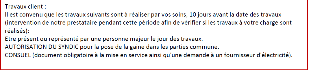 Des nouvelles du projet pour @Mathieu82, @Scub: et les autres et plusieurs questions pour vous : Le 29/12/2025 a eu lieu la visite de faisabilité de l'installation d'un Linky par un technicien mandaté Enedis, nous étions accompagnée par la présidente du conseil syndical. Pas d'objection de sa part, elle en a informé le Syndic de copro. Pas de retours du syndic de copro sur une tentative de veto encore aujourd'hui. Ils ont de mémoire 3 mois (donc jusquau 26/2/2026) pour le faire a partir de la remise de ma LRAR (réception le 26/11/2025) leur indiquant mon souhait de faire les travaux dans le cadre de mon droit à la prise. Le 08/01/2026, ce technicien m'a confirmé par tel la faisabilité technique de l'installation d'un Linky sur une armoire des communs située au RDC de mon immeuble. Mais je n'ai pas reçu le doc de validation technique Le 28/01/2026 l'entreprise du technicien, mandatée par ENEDIS me presse pour faire les travaux d'installation du Linky le 06/02/2026 (donc en gros ils m’appellent 1 semaine avant) parce que je cite " ils vont être hors delai contractuel de 45 jours entre la visite de faisa et l'intervention". Je m'en contrecogne de leur objectifs contractuels et je leur dit que n'ayant pas eu de document validant la faisa de ma demande, je ne peux pas dire oui comme cela, de plus le délai des 3 mois légaux du syndic ne sont pas encore passés. Ils m'envoient donc ce fameux doc technique de validation (copie en piece jointe), et je leur réponds par mail que je n'ai des dispo de dates que à partir du 26/02/2026. Ils sont censé mettre le dossier en attente et me rappeler avec des dates. Questions : Dois-je obligatoirement avoir l'autorisation du Syndic de copro pour les travaux? Il est noté dans le doc de validation technique qu'il leur faut une autorisation du syndic pour la pose de la gaine dans les partie communes, je trouve cela surprenant. (voir ci dessous) Dois-je avoir un consuel validé avant le jour des travaux du Linky? c’est également tourné de cette manière dans le doc technique (voir ci dessous) dans mon esprti , je demande le consuel une fois que mon installation IRVE est faite (en cours de recherche pour un installateur IRVE d'ailleurs) Merci d'avance de vos lumières 2_PDFsam_Doc techique after (2).pdf