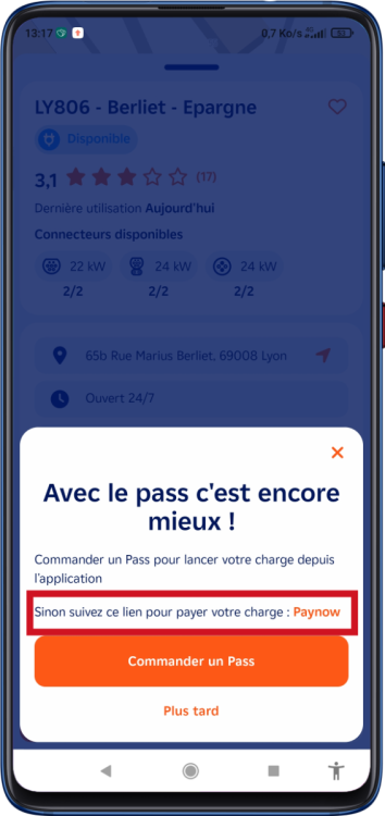 A priori, l'écran de l'appli renvoie désormais vers le site de paiement. Je n'ai pas encore essayé la borne qui posait problème.