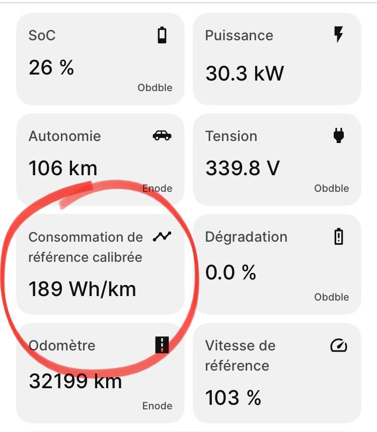 Hello, La LEAF est (très) pessimiste (au tableau de bord) sous les 50%, que ce soit pour l'autonomie restante estimée en km ou pour le % de batterie. Votre capture Leaf Spy montre bien qu'il restait presque 10% de batterie de plus qu'affiché. Ca explique que ça descende "aussi vite". à 105 km/h c'est plutôt 18-20 kWh/100 km que 15 oui Pour la suite les conseils donnés ont été les bons : il faut que le BMS soit bien calibrée, ça passe par plusieurs cycles de charge / décharge avec des charges lentes à 100% (lentes = en AC donc 10, 16 ou 32A avec une wallbox), en laissant la voiture se reposer à des % de batterie différents. Pour faire simple : rouler sans se prendre la tête et recharger la voiture à 100% (dans l'idéal avant de partir pour qu'elle ne reste pas à 100% trop longtemps). -