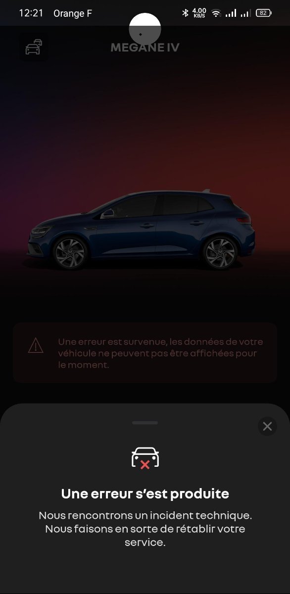 Bonjour à tous, Propriétaire d'une Mégane IV hybride rechargeable, je me suis dit que j'allais poser la question du côté du Captur rechargeable ... Pour faire simple : avez-vous des soucis pour gérer la voiture avec l'application MyRenault ? J'ai renouvelé les services il y a 1 an je crois. La partie programmation des recharges a toujours eu plus ou moins des bugs mais je m'en sortais. Puis un jour, la position de la voiture sur la carte n'était plus disponible. Et depuis quelques semaines, impossible de lancer le pré-chauffage à distance. C'est de pire en pire. Plus rien ne marche sur cette application. Au lancement, j'ai toujours des messages d'erreur (voir pièces jointes). J'ai contacté le support. Ils sortent le baratin habituel demandant de réinitialiser le système, vérifier la connexion... bref, tout des trucs qui ne changent absolument rien. Avez-vous les mêmes soucis ?