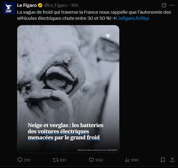 Tu as raison ça été catastrophique pour ma petite batterie LFP avec une puissance de recharge moyenne 113 kW ! +60% en 19 minutes. Et la température associée (source : infoclimat) :