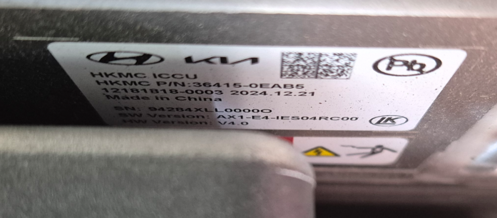 Tu es sur de toi ? Moi je doute plutôt qu'il y ait un modèle spécifique d' ICCU pour les VE qui ne disposent pas de V2L. D'ailleurs quel est le rapport , c'est bien l'onduleur qui transforme le courant continu de la batterie HT en courant alternatif : Role de chaque élément : Et pour l' ICCU si je regarde l'étiquette de celui installé sur mon VE , on voit bien que l'ICCU est commun pour Hyundai/KIA ( sur plateforme identique ) , beaucoup de pièces sont communes pour l'ensemble du groupe : Sur les modèles 2026 ,une nouvelle version est apparue .