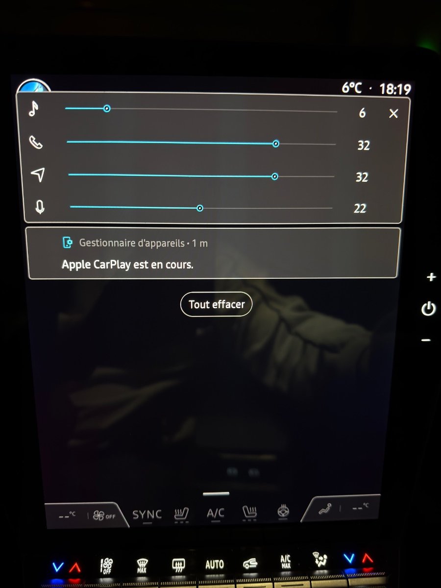 C'est pas plutôt la "connectivité 3.1.0" qu'on a eu il y a 18 mois? Et oui, mais chez Renault il peuvent te changer le volant pour ce problème en étant convaincu de résoudre le problème et te mettre un volant cheap qui chauffe pas partout… Puis te rendre le véhicule avec le même problème… Comme je l'ai déjà dis, je trouve également l'interface plus grossière (voir photo)... Par contre, pas encore de bug supplémentaire et pour l'instant je n'ai pas eu besoin d'aller faire un tour dans les réglages de la radio FM / DAB pour réactiver le caisson dans CarPlay. Le bug des capteurs de stationnement qui ont du mal a se réveillé (présent depuis la 2.1.2) sont également toujours présent... La zone rouge s'affiche, mais on a le temps d'entendre la Mégane taper dans le mur avant d'avoir le bip des radars....