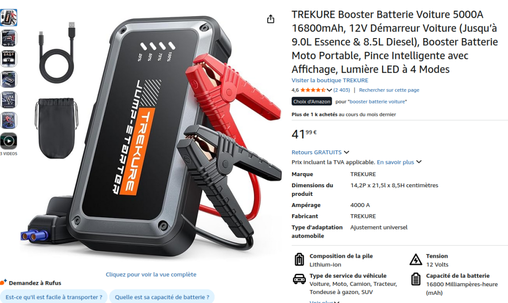bonjour, perso , j ai ca ca vaut dans les 50€ chez norauto ( j avais du le payer 25 ) , je l ai depuis pas mal d années, il me servait a demarrer mon hybride ( auris 2010 ) qui avait un soucis de 12V . il a servit sur ma leaf quand la batterie a lachée et evidement il m a bien dépanné sur la ioniq avant qu eje craque et achete une nouvelle batterie j ai l ancien modele en micro USB , normalement il ne doit plus etre vendu, c est plus aux normes ( usbC maintenant ) pensez a le garder chargé , et dans le frunck .... dans le coffre quand on peut pas l ouvrir ca sert pas a grand chose ( coffre electrique sur ma p45 ) https://www.norauto.fr/p/booster-400-12v-8-000-mah-400-a-2274031.html -