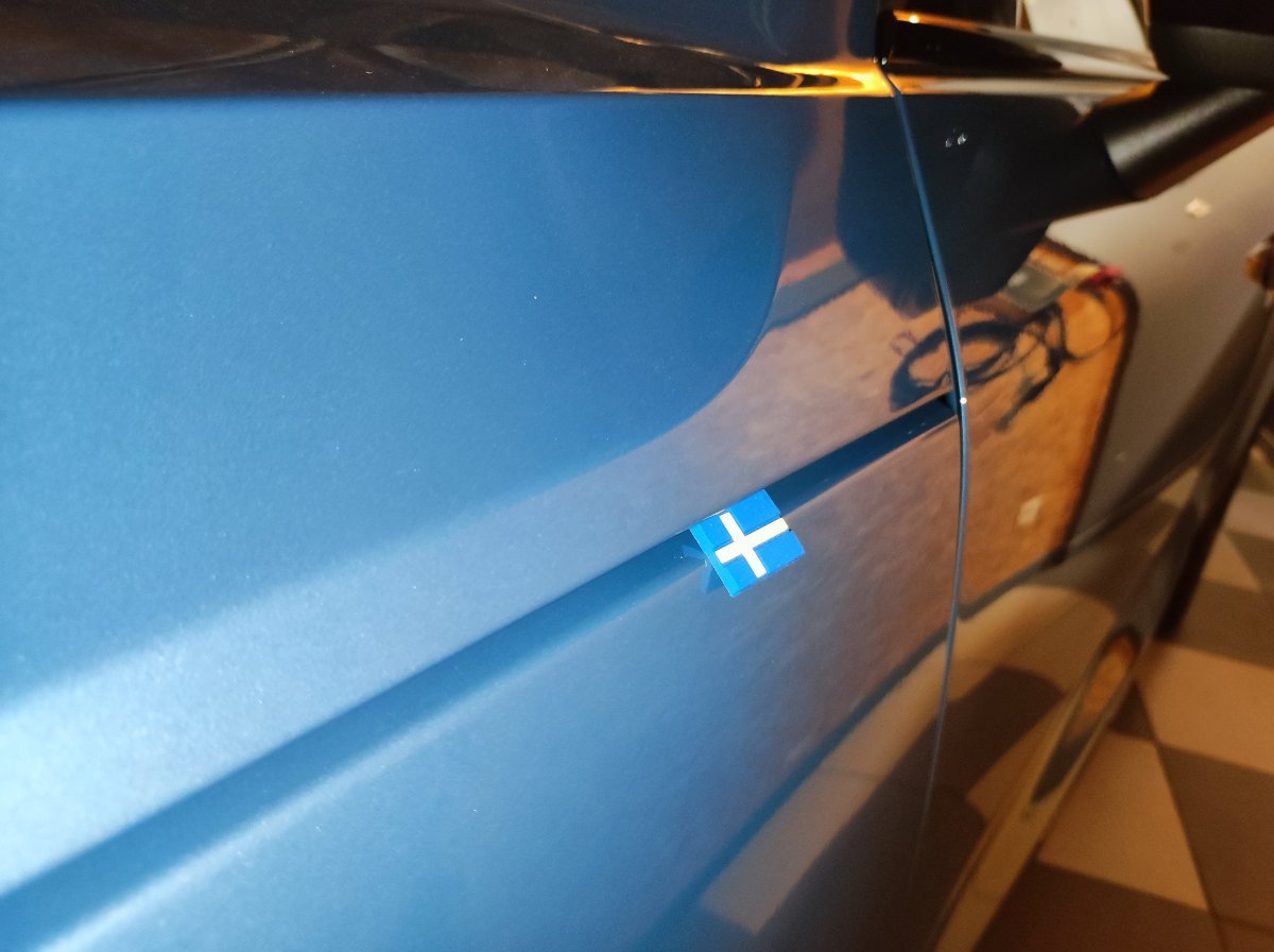 Un logo Suède sur le capot équivalent de celui qu'on a sur les sièges: