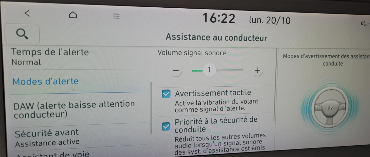 Hello. J'ai eu un kia Niro où je sentais très bien les vibrations contrairement à ma Ioniq5 donc j'en ai parlé dès la réception de ma voiture à ma concession, après plusieurs mois de discussion pour un autre problème plus ennuyeux ils ont finalement testé l'absence de vibration d'alerte dont je parlais et ils ont recommandé un moteur de vibration qu'ils ont changé. Résultat : exactement le même problème d'absence de vibration. J'ai laissé tomber. Si tu as une amélioration après intervention de ton garage je suis intéressé de savoir ce qu'ils ont fait.