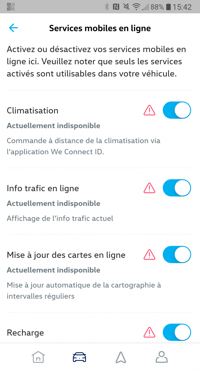 J'imagine que tu n'as pas reçu de mail de la part de VW pour te confirmer l'activation des service de l'application WeConnect, n'est-ce pas?