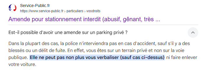 Donc toute zone type parking de centres commerciaux la sanction est possible. Pour l'enlèvement, c'est effectivement un peu plus compliqué.