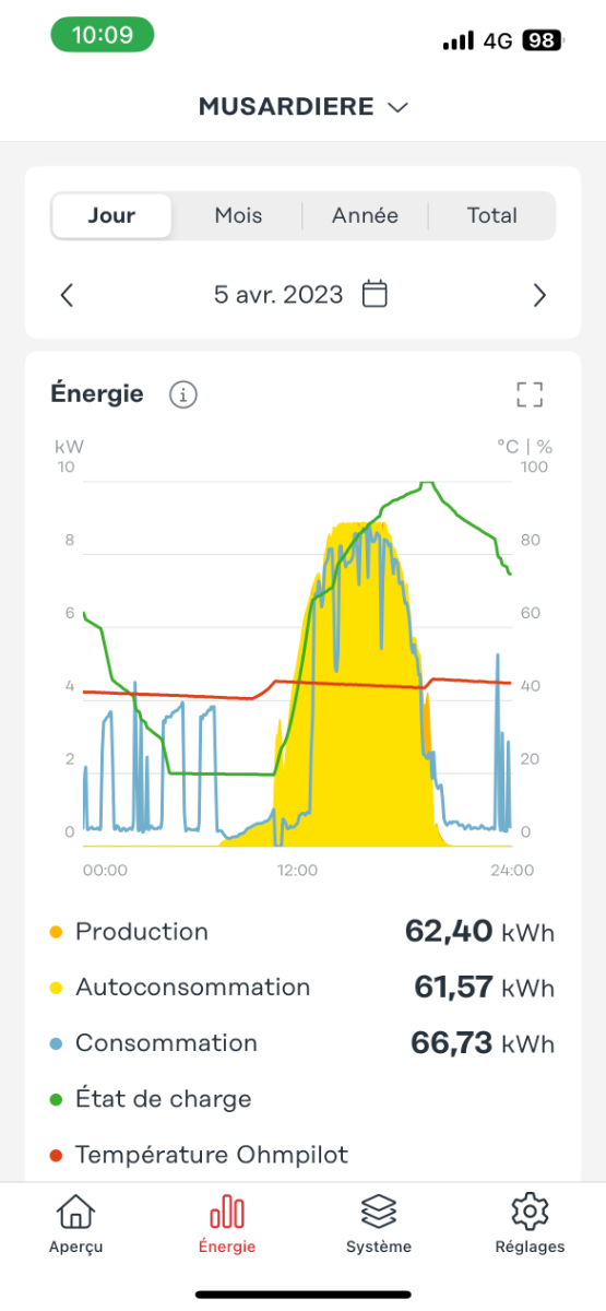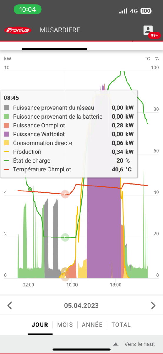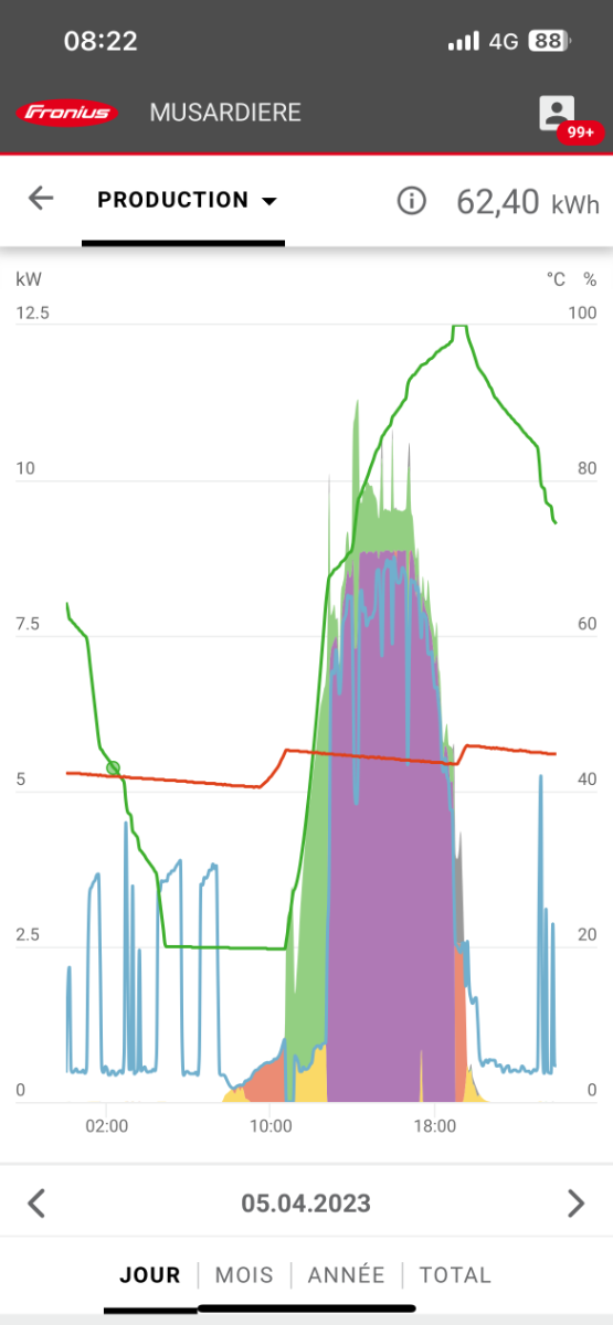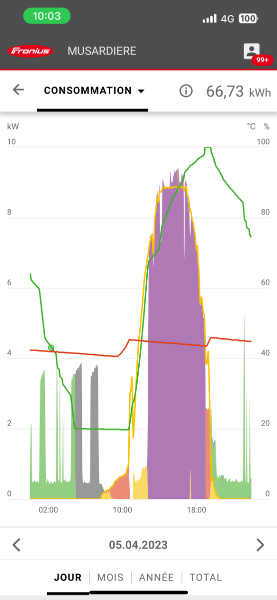 Sympa ton graph... C'est ton app fronius? Tu peux nous donner la légende ?