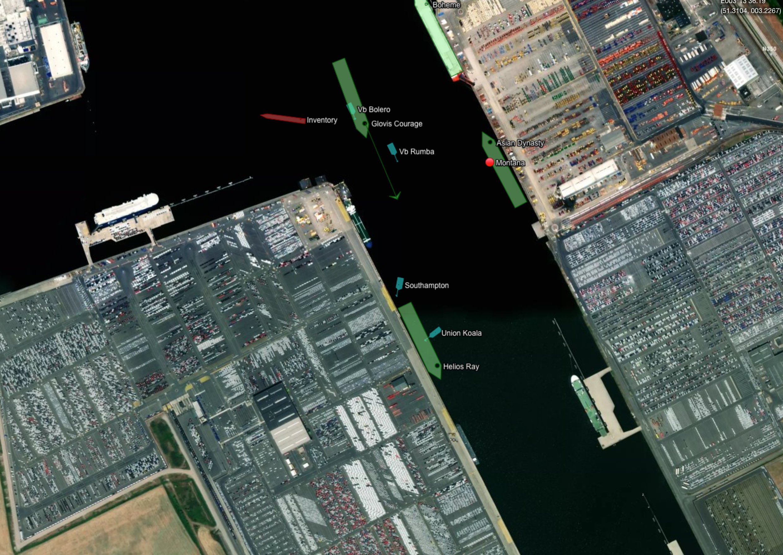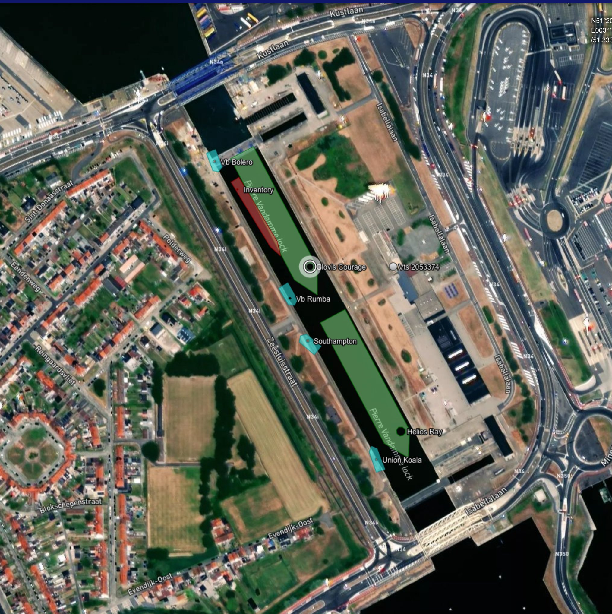 Oui c'est juste la vue satellite sur Marine Traffic. Si tu vois des bateaux sur les photos, ils étaient là quand la photo a été prise mais ils ne sont plus là. En live c'est les formes en couleur.