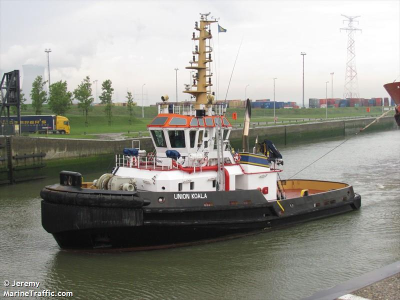 Les deux remorqueurs qui ont assisté l'Helios Ray.