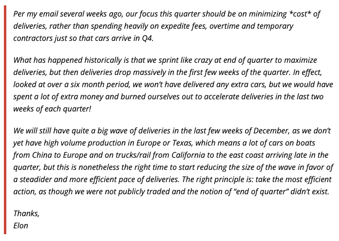 Tesla change probablement son fusil d’épaule avec l’explosion de ses ventes. Ce n’est désormais  plus possible de livrer en fin de trimestre d’aussi grands volumes de véhicules.